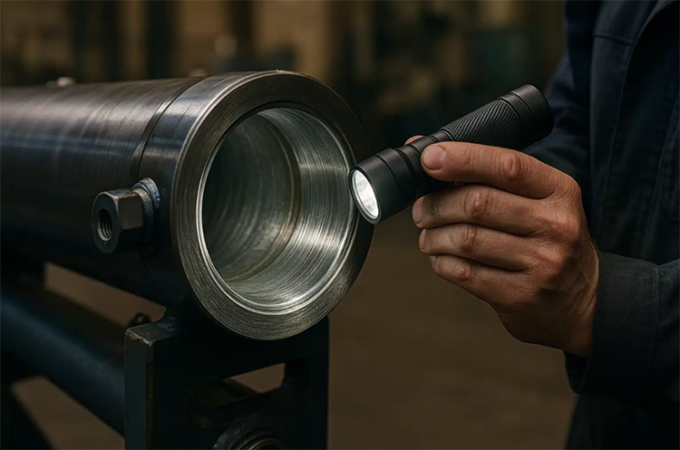 أي حفر أو انحناء من قضيب المكبس سيؤدي حتماً إلى فشل الختم الهيدروليكي الجديد قبل الأوان. عند التفتيش ، قم بتدوير قضيب المكبس ببطء في الضوء الكامل وفحص السطح بأكمله بعناية.